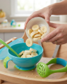 Conveniently prepare and serve nutritious food for baby with the Nuby Mash n' Feed set - Garden Fresh edition! Set comes with bowl, masher, spoon, and travel top. Dishwasher Safe BPA Free